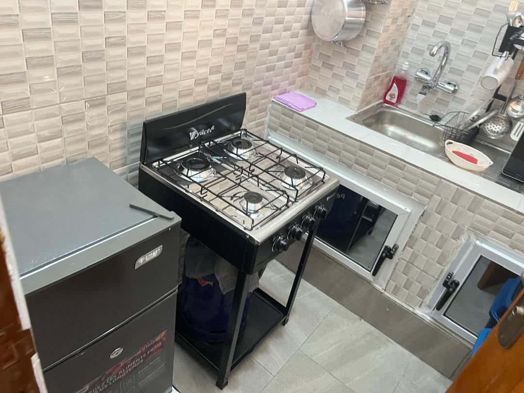 Cuisine entièrement équipée : cuisinière, micro-ondes, mini-frigo